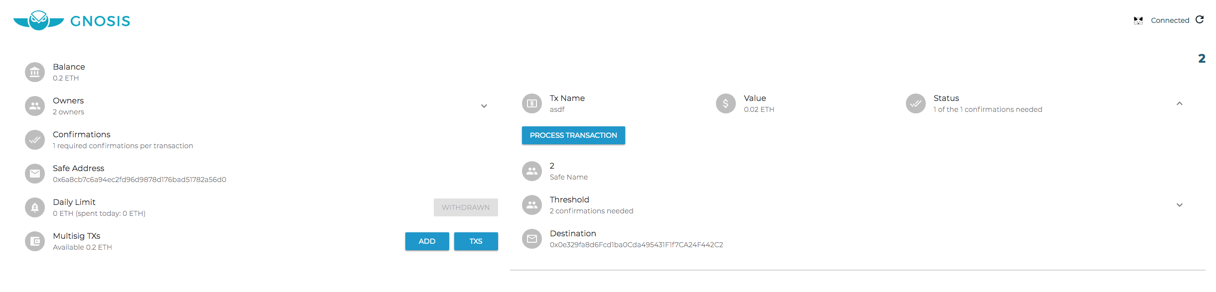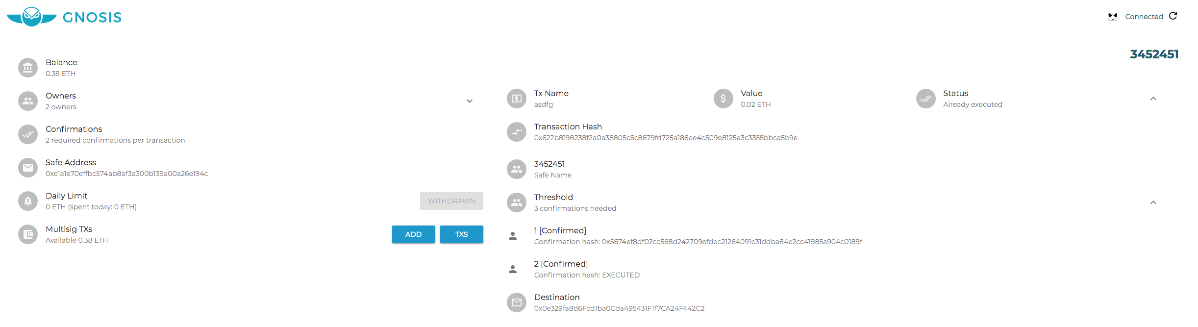 - During Safe creation, enter 1.45346457 for number of confirmations