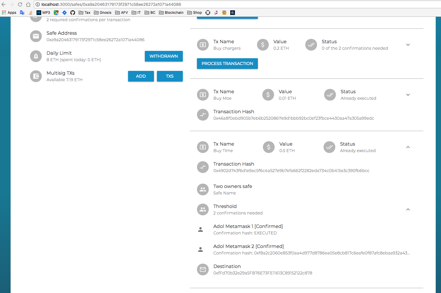 In this PR I have introduced the logic for executing pending TXs once the threshold is reached. In other words, the functionality at UI level (remember I am using a very own mocked service) is "done".