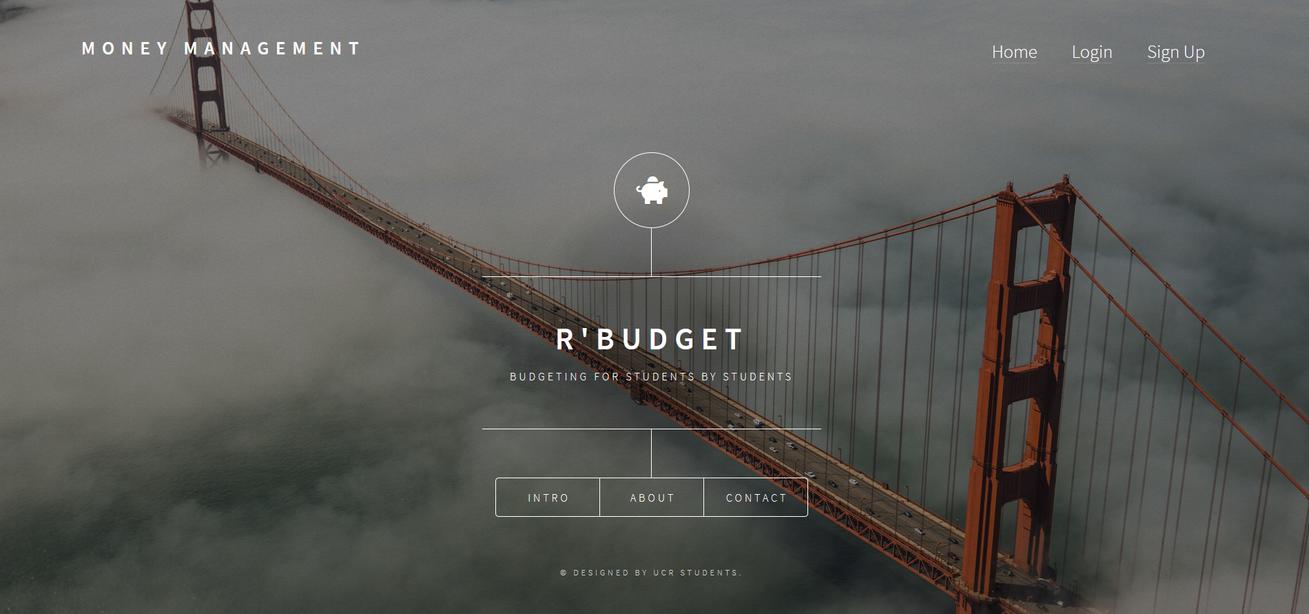 - Presents to the user what the web app is about. Displays rbudget and created by money management.