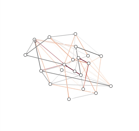 Edge weights are mapped to edge colors using a diverging colormap, by default 'RdGy'.