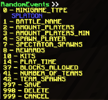 - Set of team spawns, you will need to set one spawn for each team. Example, if you put 8 in 'Number of teams' you will need to set 8 spawns, the menu will show that.