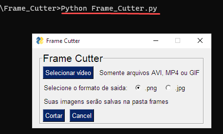 Após rodar esses comandos, na pasta onde se encontra o arquivo Frame_Cutter.py, você devera rodar o seguinte comando: