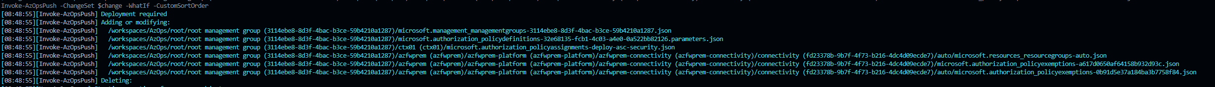 -CustomSortOrderswitch in Invoke-AzOpsPush to enable scenarios described in Add option to specify deployment order #592. It will still sort the deploymentlist by default.Breaking Changes