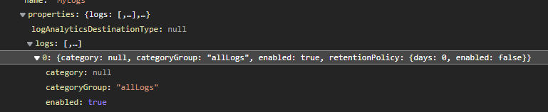 var diagnosticsLogs = categoryGroup: contains(logsToEnable, 'AllLogs') ? {