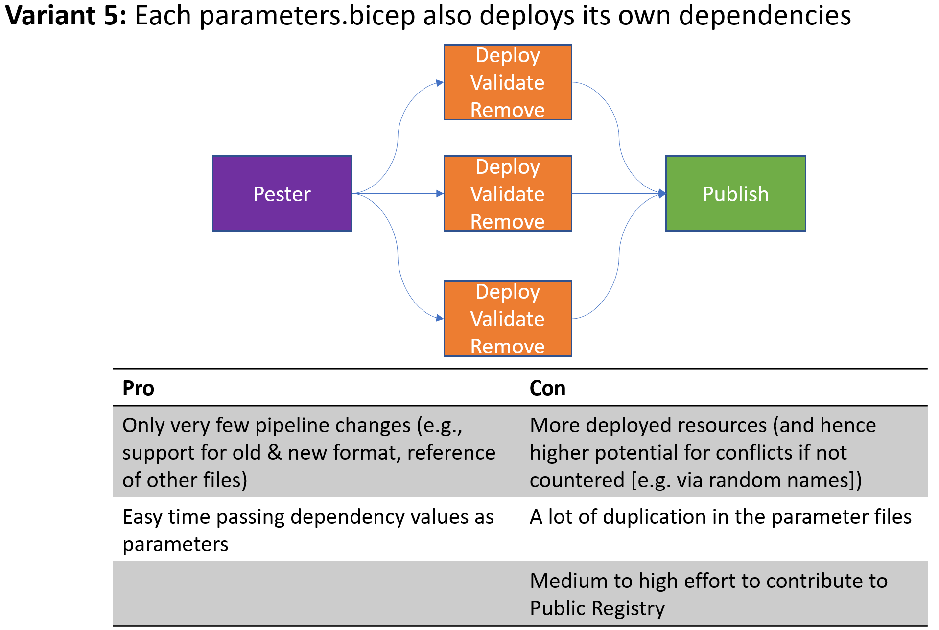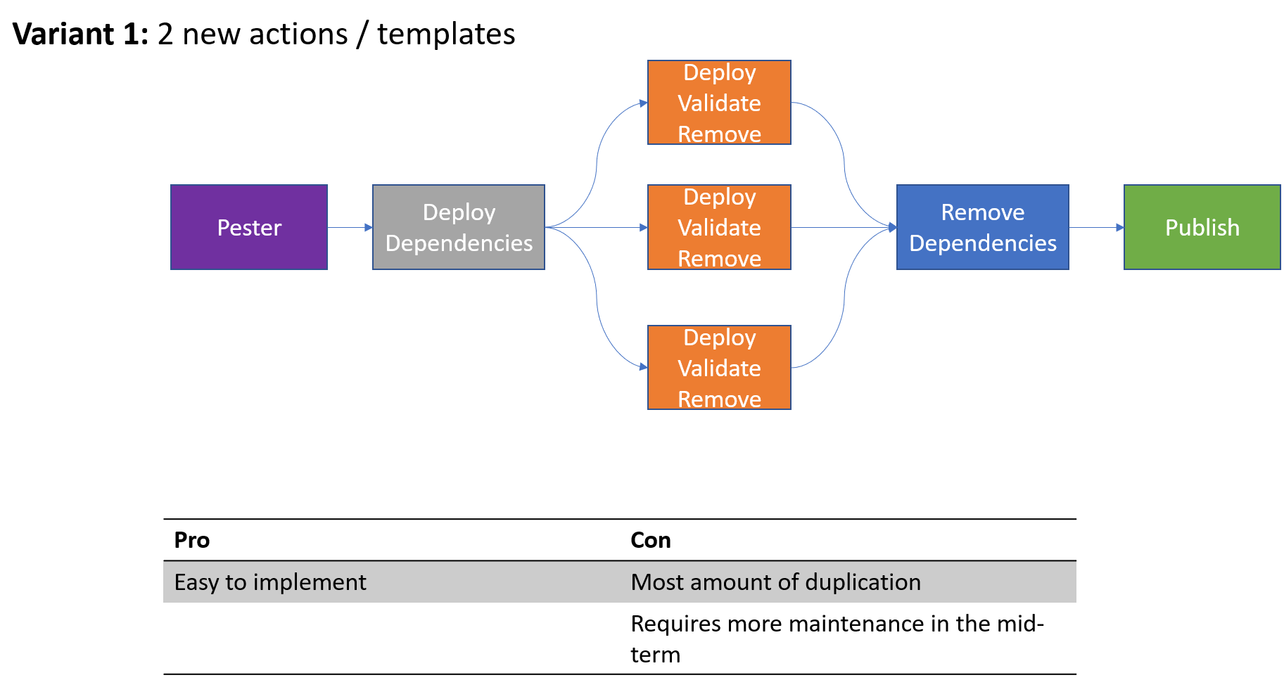 Note: Regardless of the implemented approach we should add features such as the Parameter-Matrix & Stage-template for Azure DevOps.