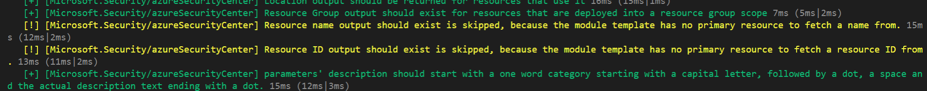 Microsoft.Security\azureSecurityCentereven though this resource type does not exist in the module. Instead the module is a collection of other resource type deployments and as a result it does not make sense to test for e.g. aMicrosoft.Security\azureSecurityCenterresource IDPipeline references