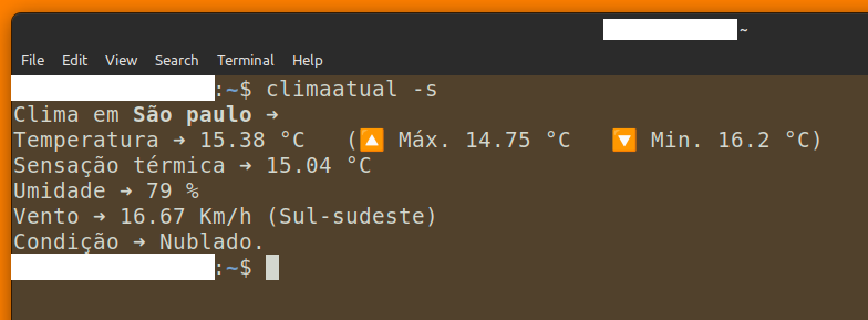 Para utilizar o programa execute o comando climaatual seguido do parâmetro -s: