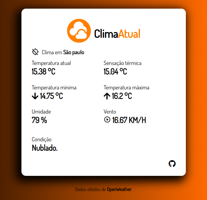 Para utilizar o programa execute o comando climaatual: