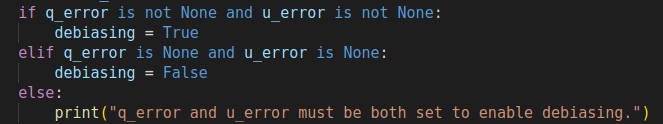 | print("q_error and u_error must be both set to enable debiasing.") |