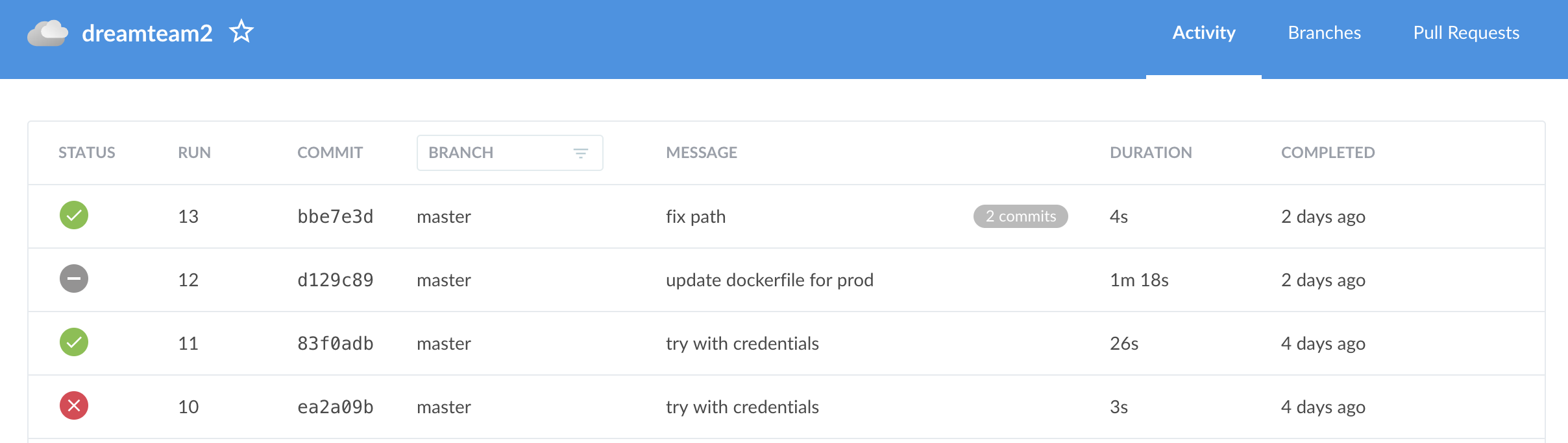 La dernière va se connecter en SSH à notre serveur de staging basé sur Digital Ocean, stopper les containers Docker en cours, pull les dernières versions des images Docker pour Web et Server et enfin relancer les containers.
