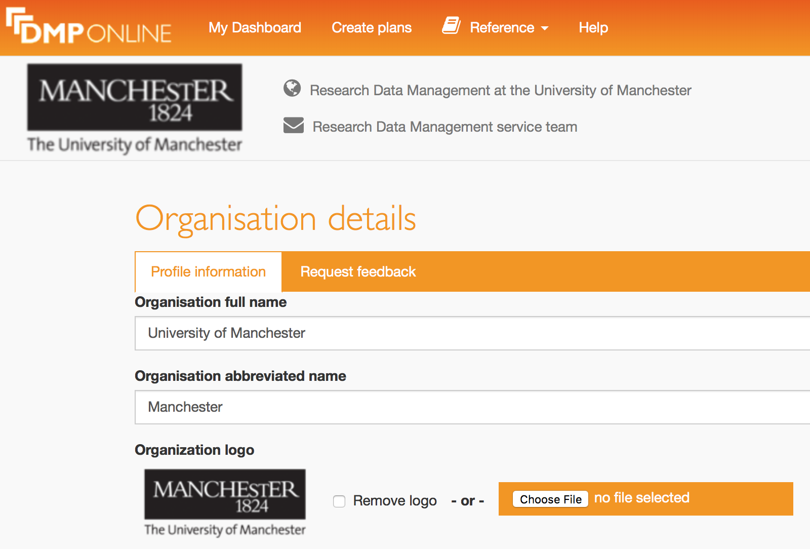 Both sizes of logo can be viewed on the 'Organisation details' page - note that the logo at the top appears blurry: