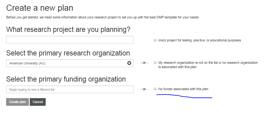 Change the text on the ‘Create a new plan’ screen under the ‘Select the primary funding organisation’ heading (screenshot). This is causing a lot of confusion for researchers who are applying to funders who do not have a templates.