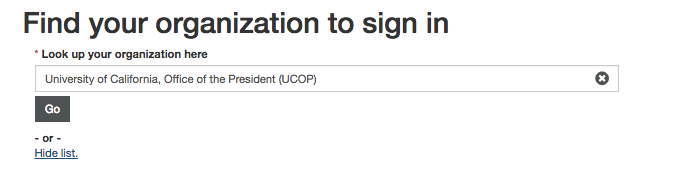 When I click the link to 'See the full list' of orgs while logging in via Shib nothing happens (screenshot)
