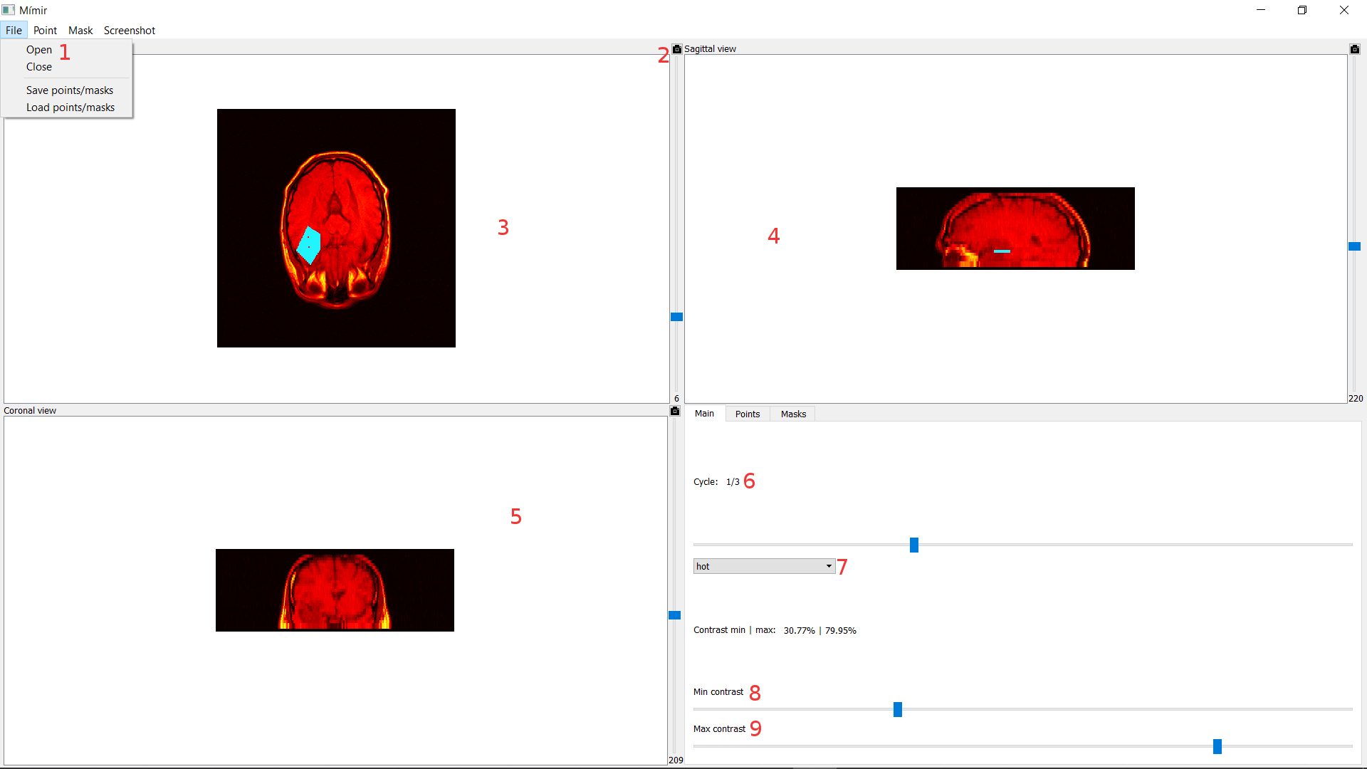 Mímir is a Nifti files viewer, capable of processing those files in differents manners (creating masks, adding colormaps, saving slices in PNG format). It is composed of a GUI and a CLI.