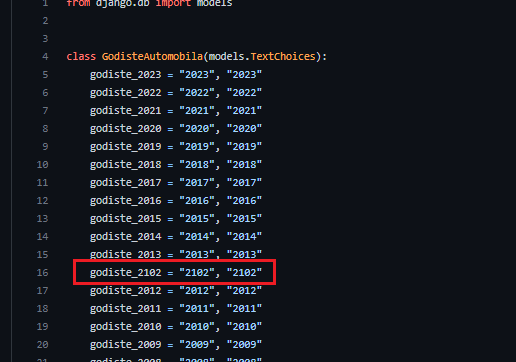 [FIX]: Izbaciti enum godiste automobila 2102 #62