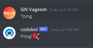 That's it your BOT is ready work. By default discogen adds the ping command. You can modify it to your needs