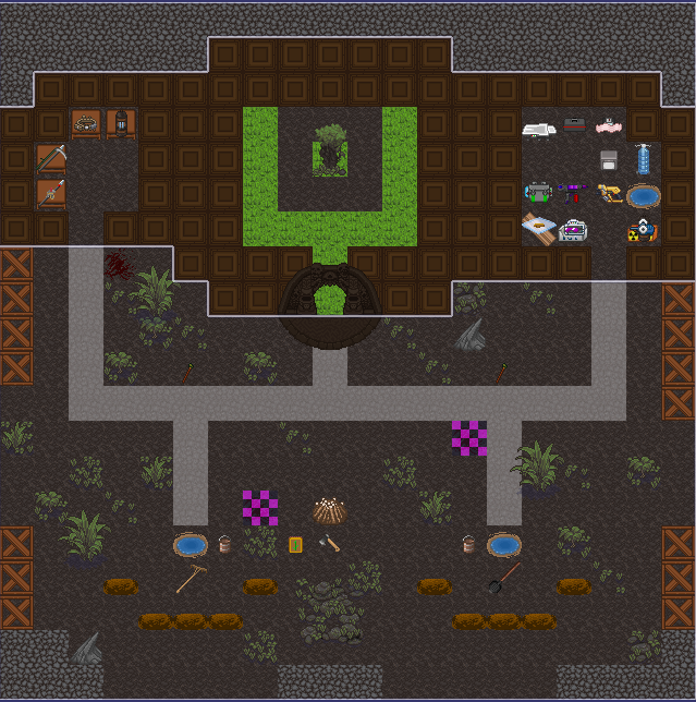 i wont organize any ruin files yet, and they wont be finished either, i will need to go back and check on and polish, etc all the ruins i make This one depicts an old and ruined cult temple that was taken down by dryads, who unfortunately couldn't resist the evil influence and soon turned corrupted. You can get some runed metal, bones, a cult knife, and a soul shard.