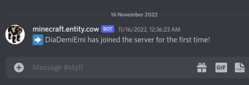 As an example here I have made it so that the first-join messages are sent to the staff channel. You would likely just want these in the primary channel though.