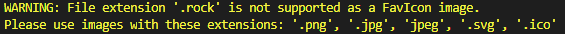 If the extension is not in one of the valid formats, a warning will display.