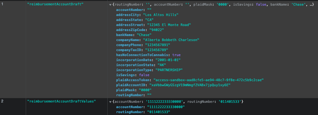 @NikkiWines noticed that there is currently a bug with the Chase flow via Plaid. Did a bit of digging and it's because we have the accountNumber and routingNumber fields in both reimbursementAccountDraft and reimbursementAccountDraftValues: