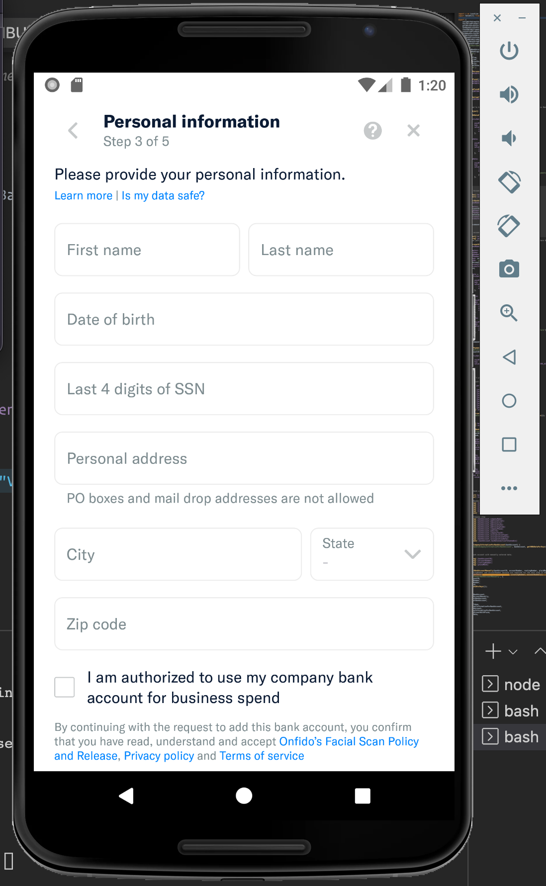 UpdateCompanyInformationForBankAccount) in the VBA for Workspace was throwing an error because it's expecting therountingNumberandaccountNumberhere, but those values are empty because are captured in step 1 form (ConnectBankAccountManually) but not saved locally for the step 2.Fixed Issues
