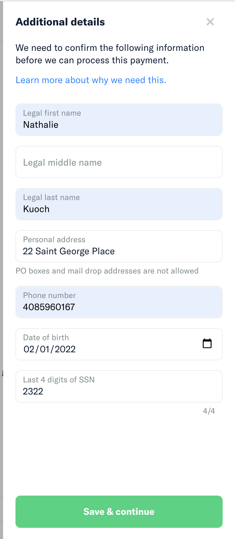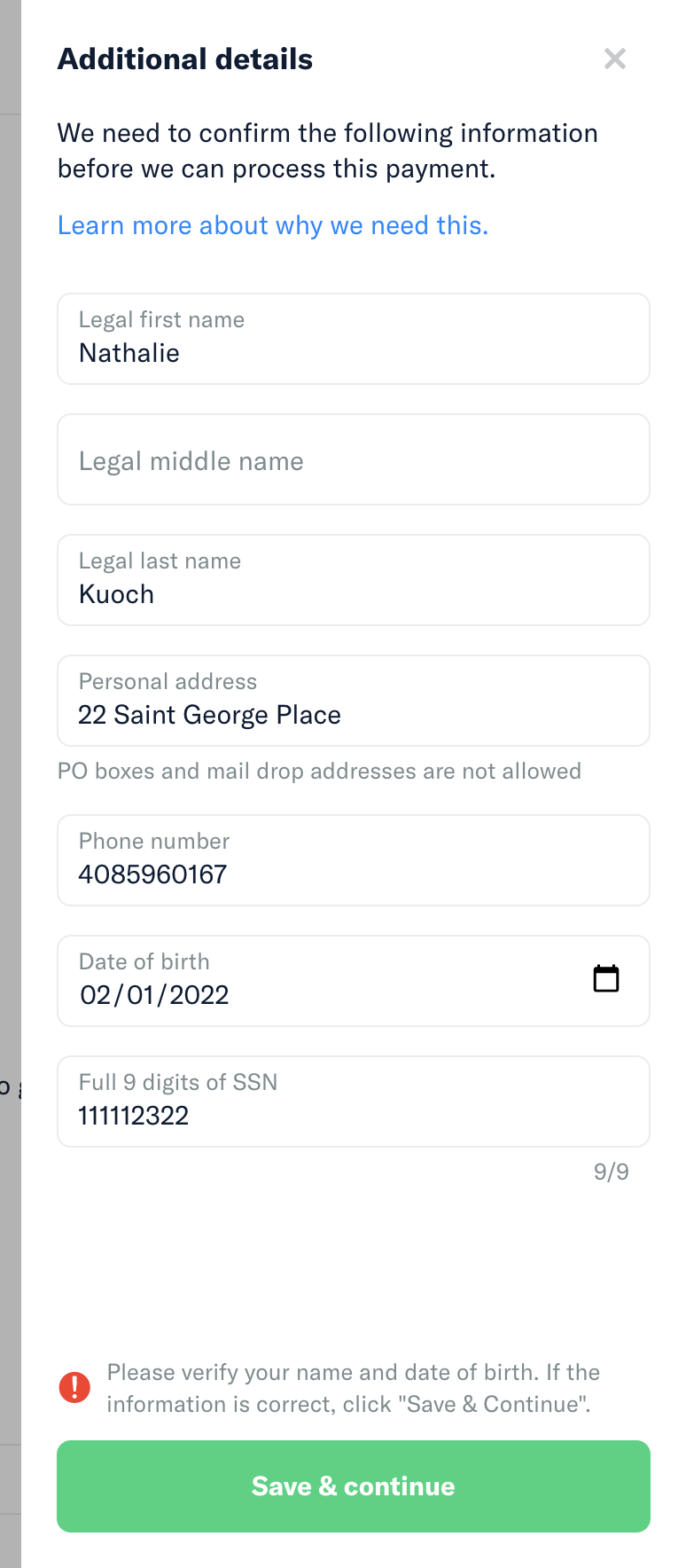 Fill up the Additional Details Step with random 4 digit SSN.