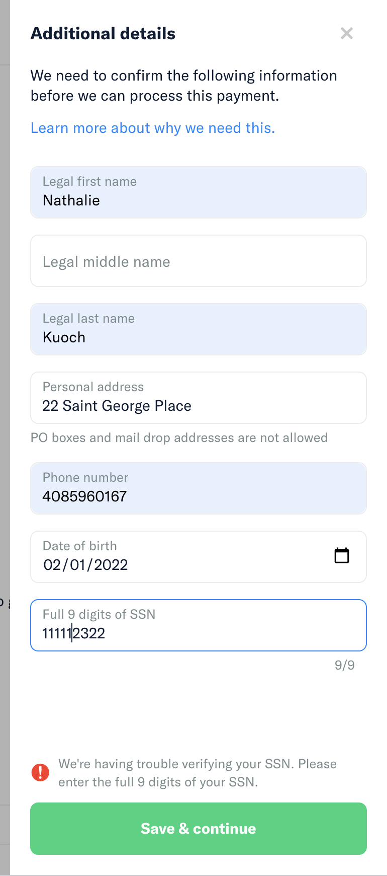 P2P KYC - Ask user to provide full SSN when LexisNexis cannot #7804