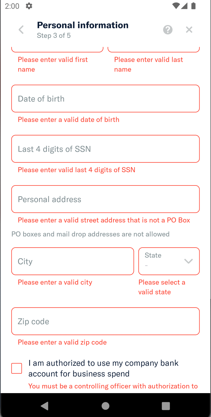yeah, it can be frustrating if you don't realize that only last 4 digits of SSN is being asked. Typing more than that does nothing |