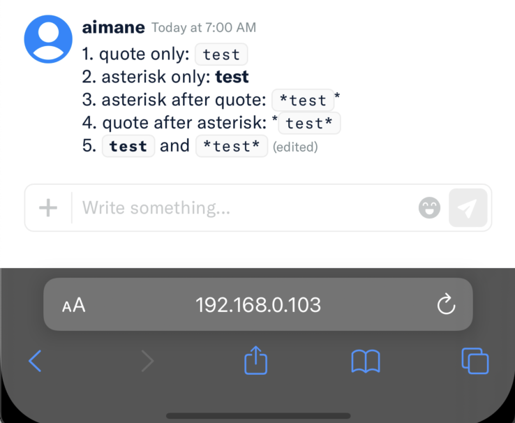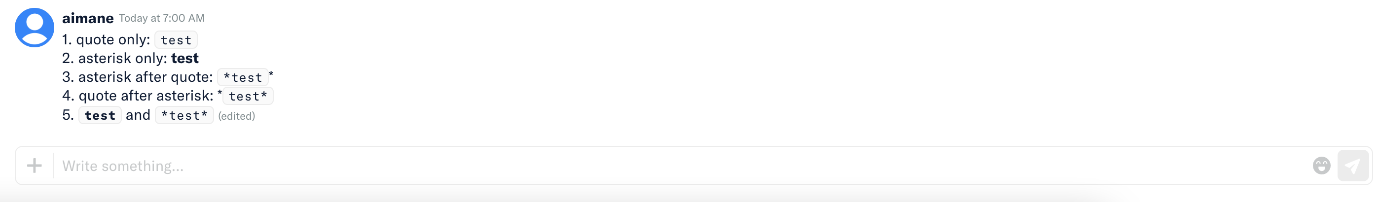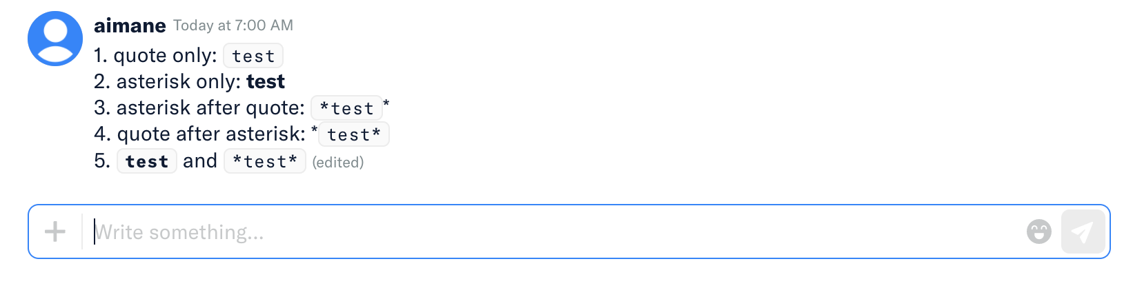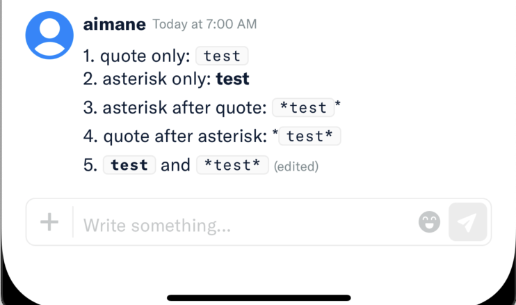 | regex: /(<pre>|<code>|<a>)*\B\*((?!\s).*?\S)\*\B(?![^<]*(<\/pre>|<\/code>|<\/a>))/g, | ||