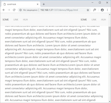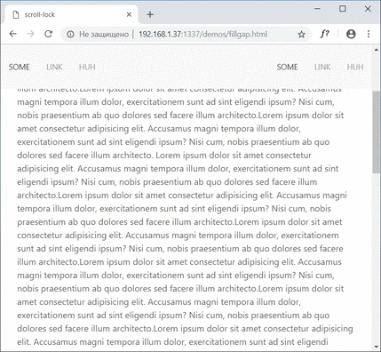 <div class="my-fill-gap-element" data-scroll-lock-fill-gap></div>A call to the disablePageScroll method creates a queue of calls. If you call the disablePageScroll method twice in a row, and then enablePageScroll, the page scrolling is not activated, because the enablePageScroll method will need to be called a second time.
