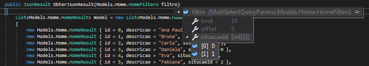 Após realizar algumas pesquisas encontrei um post onde apresentava o mesmo problema stackoverflow com a necessidade de passar os valores selecionados de um DropDown do tipo MultiSelect para o método via QueryParams identifiquei que os valores são passados via url.