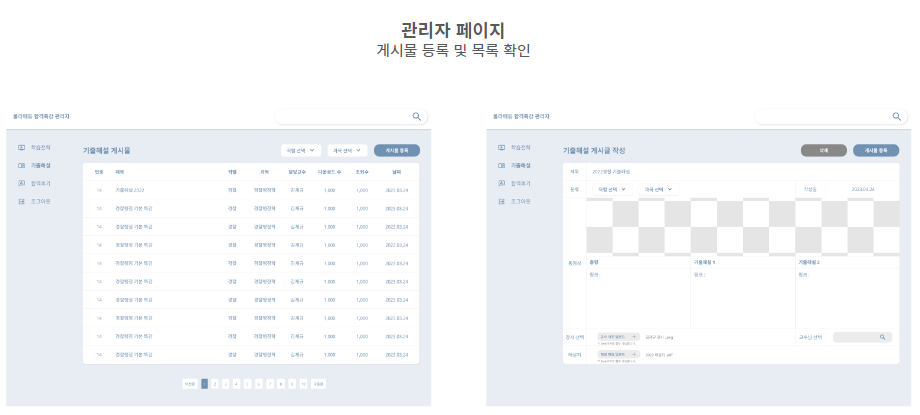 • 필터(과목별)에 의해 해당 게시물이 표시되는 리스트형 페이지를 신규 제작