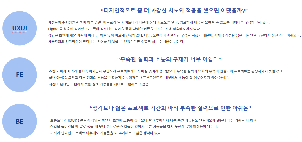 • Postman, Notion, 팀 Slack을 활용해 BE 내부 회의, FE와의 소통을 했습니다.