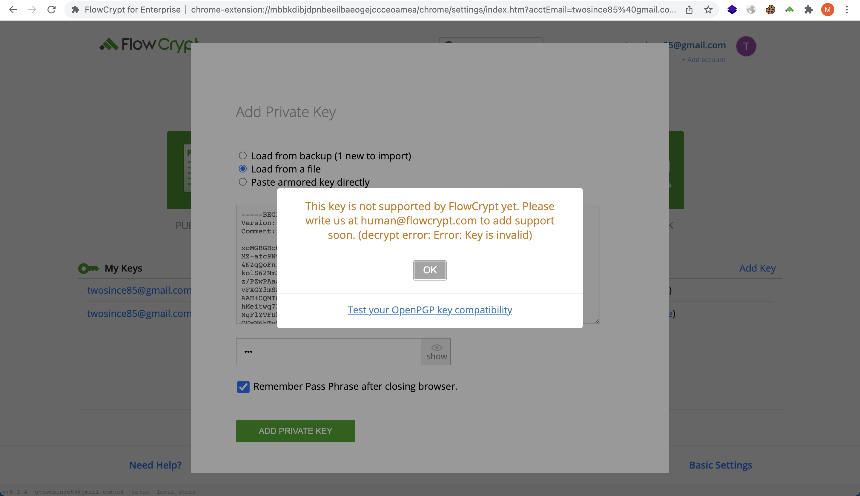 @martgil I think you had issue reproducing the problem. You can ask here. Did you try to put the broken key into inbox and then load it? If it succeeded, then with the above PR it should fail - please triage. |