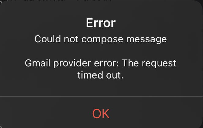 I got this when forwarding a 9+ mb video. But maybe that's for another issue? This was after it already spent some time uploading. So if we're uplaoding a large message, we should have higher timeout? Or the timeout should be based on "how long we didn't send any bytes for" vs "how long it took overall" |