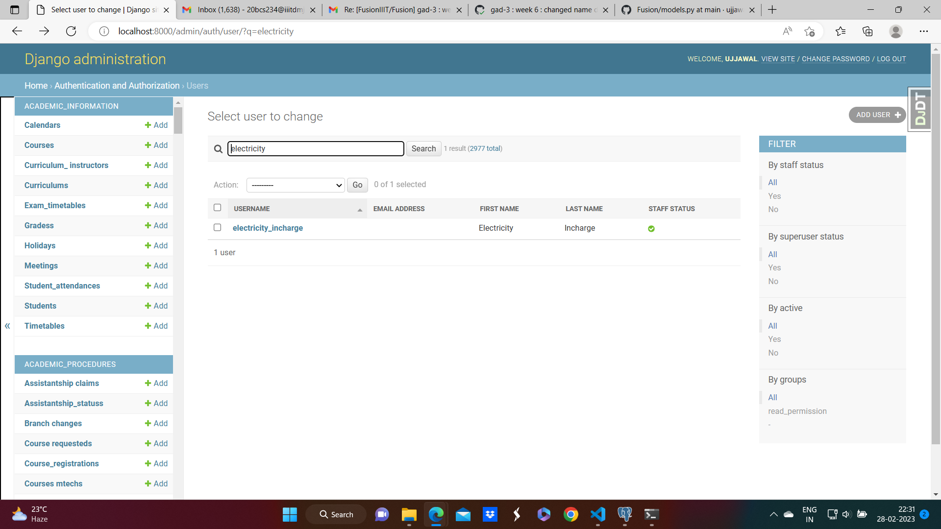 * gad-3 : week-2 : changed api functions (#1069) * Checked the sidebar after acad-admin login and fixed the (#1113) fix: icons that were disabled or not working. * ac-2: added sample excel sheet to add new students and deleted unnecessary files (#1109) * Enabled all modules for access (#1120) * gad-3 : workers would be assigned by Section Incharge instead of Caretaker (#1132) Co-authored-by: Akshat Nema <76521428+akshatnema@users.noreply.github.com> * gad-3: Week7 : fixed the notification and re-assign worker button issues (#1137) Co-authored-by: Aksh Bansal <63552235+Aksh-Bansal-dev@users.noreply.github.com> * auto-restart docker (#1147) * OS -2 : Week 4 : Addition of important personal information during booking an appointment (#1084) * Date validation added * Date Validation for booking ambulance --------- Co-authored-by: Akshay010203 <92329718+Akshay010203@users.noreply.github.com> * gad-3 : week-8 : db migrations after adding Section Incharge (#1173) * before adding functionality for secincharge * Delete 0002_auto_20230321_0041.py * gad-3 : week8 : remove wrong dependency to globals. (#1178) * AC-2: Replaced .xlsx file with .xls file (#1124) * created apis for AC2 module * created apis for AC2 module * created apis for AC2 module * added apis for AC2 module and created backlog model * created functionalities for pre registration configuration , also created html templates and apis for the same * removing postgres data files and migrations file * Remove ignored files from repository * removing postgres data files and migrations file * removing postgres data files * functionality for faculty to view assigned course and generate roll list * Wrong details displayed : course name in place of course code * Removed migrations file * Changed the gitignore file * AC-1 : Add functionality to add and update courses (#1300) * Add functionality to add and update courses * Course version added * Delete FusionIIIT/Fusion/settings/development.py * Delete FusionIIIT/applications/academic_procedures/migrations/0002_auto_20240218_1206.py * Delete FusionIIIT/applications/eis/migrations/0002_auto_20240218_1206.py * Delete FusionIIIT/applications/globals/migrations/0002_auto_20240218_1206.py * Delete FusionIIIT/applications/globals/migrations/0003_auto_20240218_1235.py * Delete FusionIIIT/applications/globals/migrations/0004_auto_20240218_1242.py * Delete FusionIIIT/applications/globals/migrations/0005_auto_20240218_1325.py * Delete FusionIIIT/applications/globals/migrations/0006_auto_20240218_1336.py * Delete FusionIIIT/applications/globals/migrations/0007_auto_20240218_1601.py * Delete FusionIIIT/applications/globals/migrations/0008_auto_20240218_1942.py * Delete FusionIIIT/applications/globals/migrations/0009_auto_20240219_2217.py * Delete FusionIIIT/applications/globals/migrations/0010_auto_20240219_2232.py * Delete FusionIIIT/applications/scholarships/migrations/0002_auto_20240218_1206.py * Delete requirements.txt * Delete FusionIIIT/applications/programme_curriculum/migrations/0002_auto_20240312_1929.py * Delete FusionIIIT/applications/programme_curriculum/migrations/0003_auto_20240312_1944.py * Delete FusionIIIT/applications/programme_curriculum/migrations/0004_course_latest_version.py * Delete FusionIIIT/applications/programme_curriculum/migrations/0005_auto_20240313_0128.py * Gad 5 (#1341) * Enabled all modules for access (#1120) * GAD-5: Fix responsiveness (#1125) Co-authored-by: A Anunaya <76819712+Anunaya07@users.noreply.github.com> Co-authored-by: Aksh Bansal <63552235+Aksh-Bansal-dev@users.noreply.github.com> * GAD -5 Dashboard Changes (#1325) * dashboard and usercard updated (#1329) --------- Co-authored-by: Yathartha Goenka <75240973+yatharthagoenka@users.noreply.github.com> Co-authored-by: akshatnema <20bcs022@iiitdmj.ac.in> Co-authored-by: Harshvardhan Singh <73544247+Lawful2002@users.noreply.github.com> Co-authored-by: A Anunaya <76819712+Anunaya07@users.noreply.github.com> Co-authored-by: Aksh Bansal <63552235+Aksh-Bansal-dev@users.noreply.github.com> Co-authored-by: BlackHAWK2001 <150950834+BlackHAWK2001@users.noreply.github.com> Co-authored-by: Arpit Tak <140220904+Ishu-ji@users.noreply.github.com> * Os 2 (#1346) * GAD-5: Fix responsiveness (#1125) Co-authored-by: A Anunaya <76819712+Anunaya07@users.noreply.github.com> Co-authored-by: Aksh Bansal <63552235+Aksh-Bansal-dev@users.noreply.github.com> * added announcements and pathologist schedule * Added pylint (#1302) * Create bandit_security_test.yml Added Bandit security test for python * Update bandit_security_test.yml * Update bandit_security_test.yml * Create pylint.yml * Update pylint.yml * Update pylint.yml * Revert "Added pylint (#1302)" (#1324) This reverts commit c1359b7ce8a1945e41e90330fe39bc634d9ca6f3. * GAD -5 Dashboard Changes (#1325) * dashboard and usercard updated (#1329) * changes in programme_cuuriculam,adding version to models (#1330) * Fixing ui bugs (#1335) * module completed * integrated dashboard * Revert "integrated dashboard" This reverts commit 8e48ec598072104d1678bfede3daab6fb8d20a2f. * Revert "module completed" This reverts commit 254487731b88e097e42743fabc97e77d84388694. * Revert "module completed" This reverts commit 254487731b88e097e42743fabc97e77d84388694. * Revert "integrated dashboard" This reverts commit 8e48ec598072104d1678bfede3daab6fb8d20a2f. * errors corrected * errors resolved * added dashboard and corrected errors * removed Migrations * removed migrations * removed migrations --------- Co-authored-by: Harshvardhan Singh <73544247+Lawful2002@users.noreply.github.com> Co-authored-by: A Anunaya <76819712+Anunaya07@users.noreply.github.com> Co-authored-by: Aksh Bansal <63552235+Aksh-Bansal-dev@users.noreply.github.com> Co-authored-by: akshatnema <20bcs022@iiitdmj.ac.in> Co-authored-by: Hardik Sharma <104981324+hardiksharma11@users.noreply.github.com> Co-authored-by: Raman Chaudhary <97114586+ChaudharyRaman@users.noreply.github.com> Co-authored-by: BlackHAWK2001 <150950834+BlackHAWK2001@users.norep