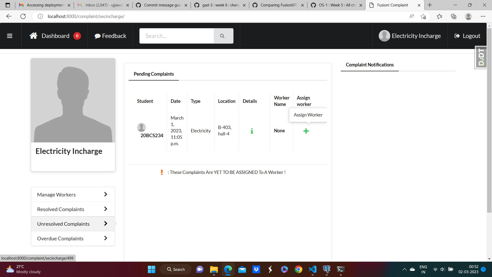 gad-3 : workers would be assigned by Section Incharge instead of Caretaker#1132akshatnema merged 7 commits intoFusionIIIT:gad-3from