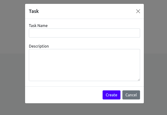 • when you click the button, A window will appear for you containing two input field and submit button, you can add title for task in Task Name input, and description in Description textarea.