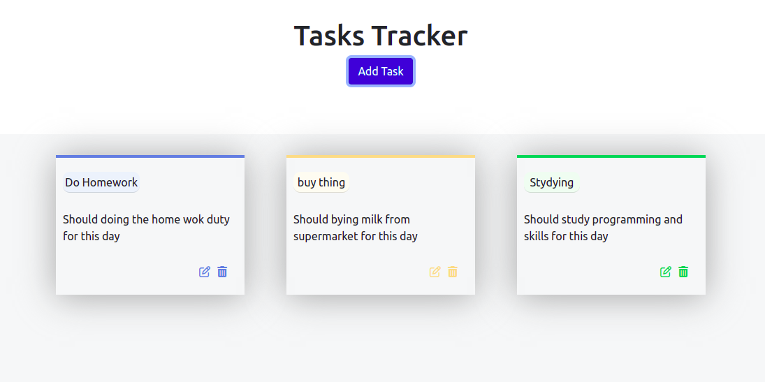 • When opening the TasksTracker website you'll be faced with our title and button Add Task to create a new task.