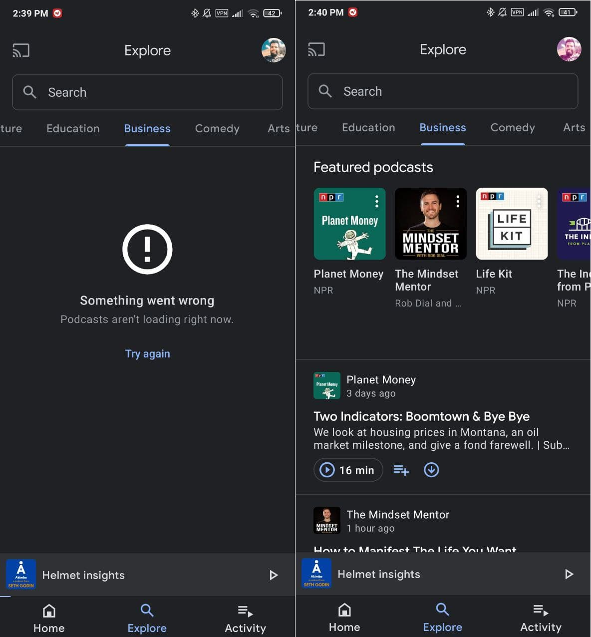 فکر میکنم گوگل پادکست هم تحت تاثیر قرار گرفته. با دو تا اکانت مختلف امتحان کردم که از یکیش مرتب استفاده میکنم و از اون یکی به ندرت. هر دو با اکسپرس وی پی ان