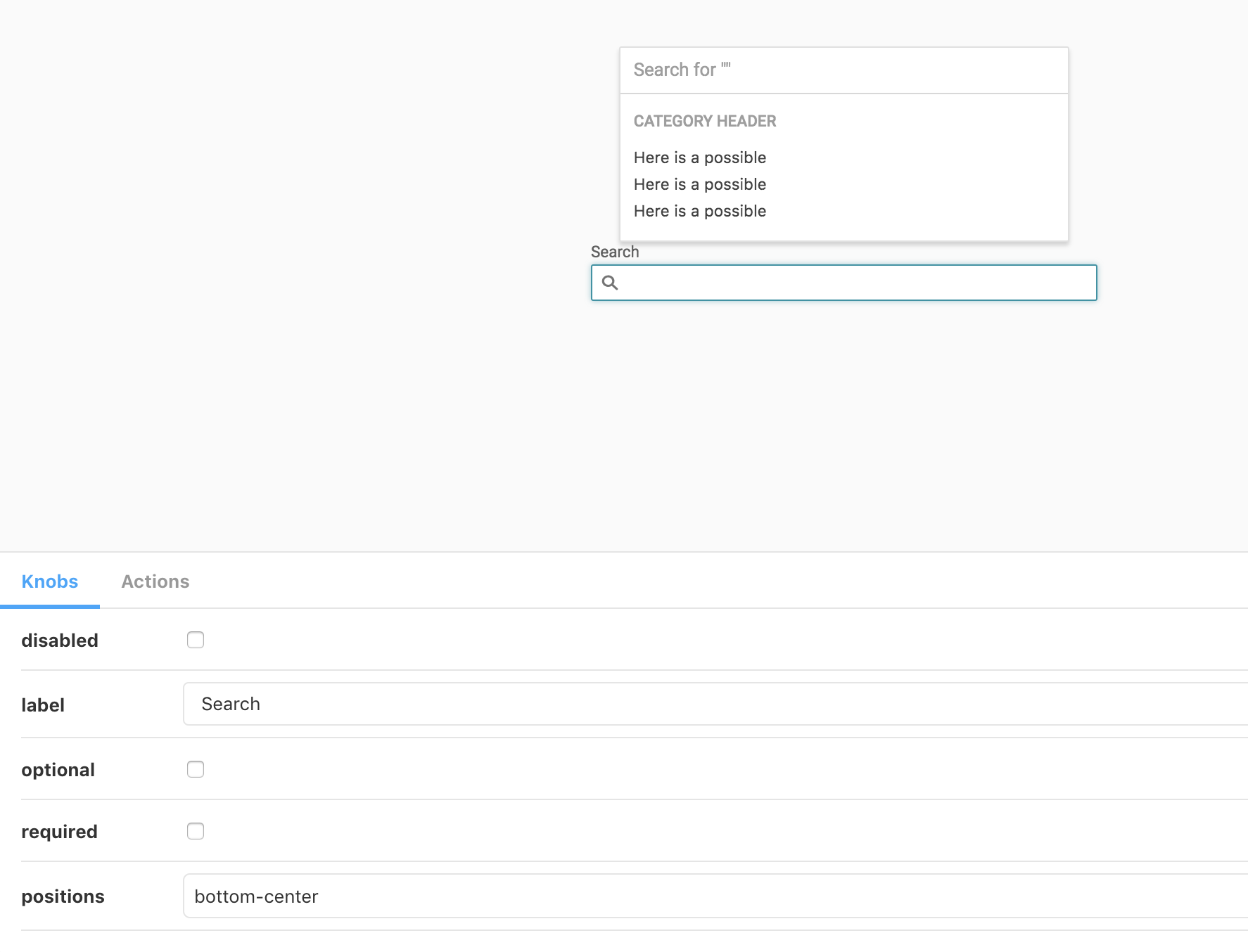This is an issue in the helix positioning logic. We are sending the correct props. The storybook controls on the bottom for knobs are pushing up against the bottom of the search suggestion box. I think this issue exists for all helix positionable elements.