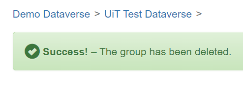 The group is deleted, and the following confirmation message appears on screen: