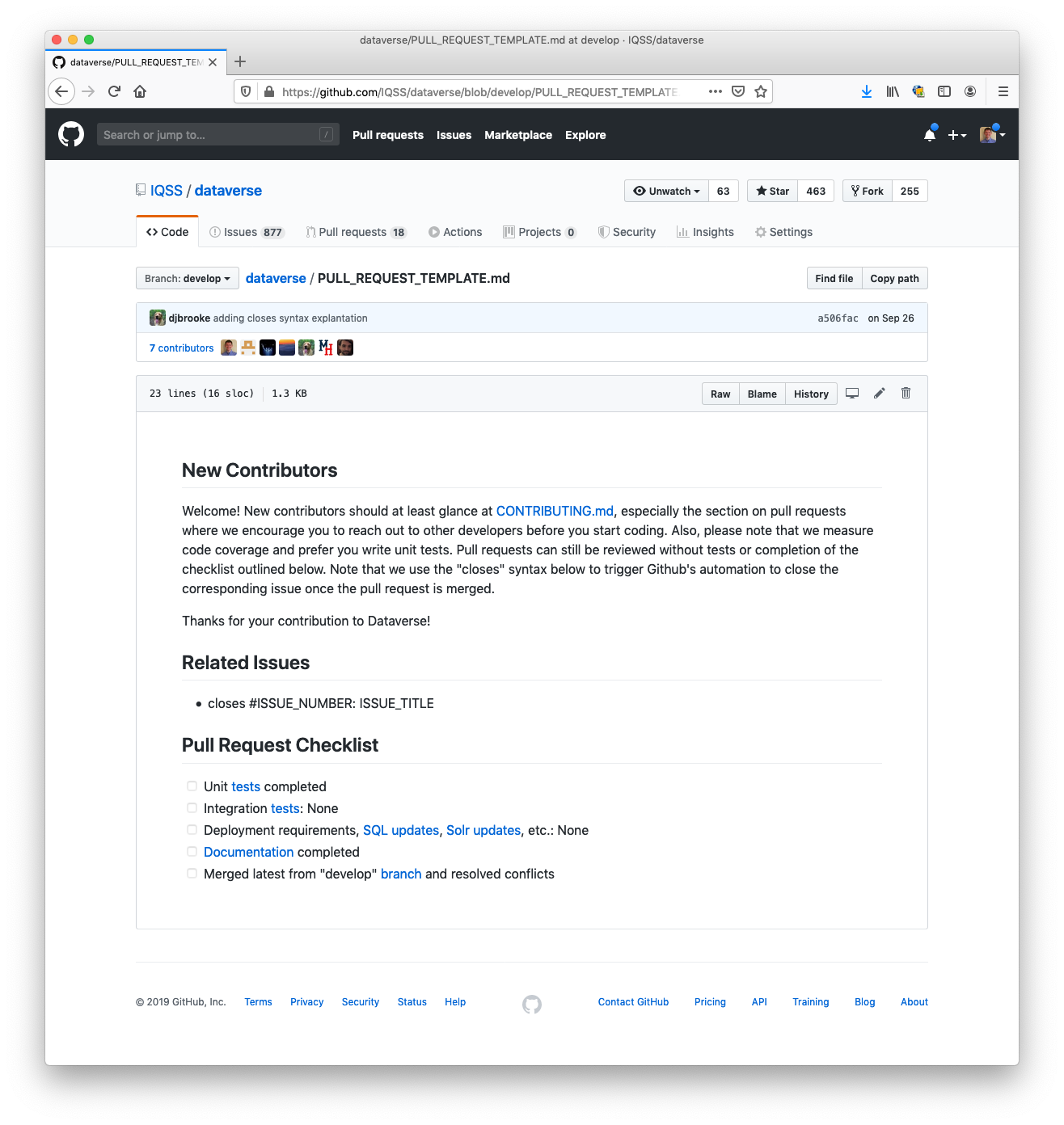 @djbrooke before we discuss this at tech hours, you might want to remove the existing pull request template as part of this pull request. It looks like this: Or you could move |