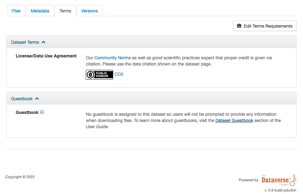 Thanks for the screenshots, @pdurbin. Which user types see the "view terms while no guestbook is selected" example? Dataset downloaders? Dataset owners? Both? |