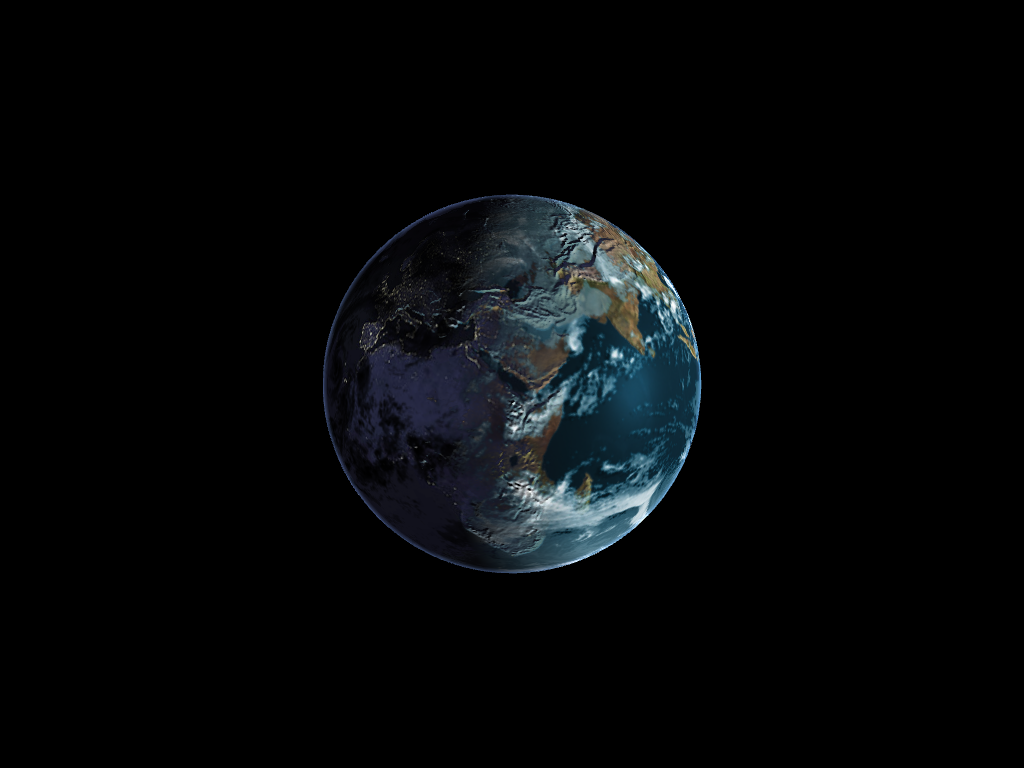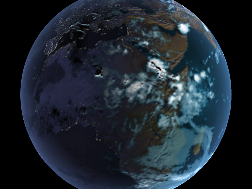 The sphere began with just daylight texture implemented, so I added the code for nighttime texture and added a mix to blend daylight and nighttime. The mix I used keeps full dayColor until the diffuse term < 0.5, and full nightColor on the back of the sphere.