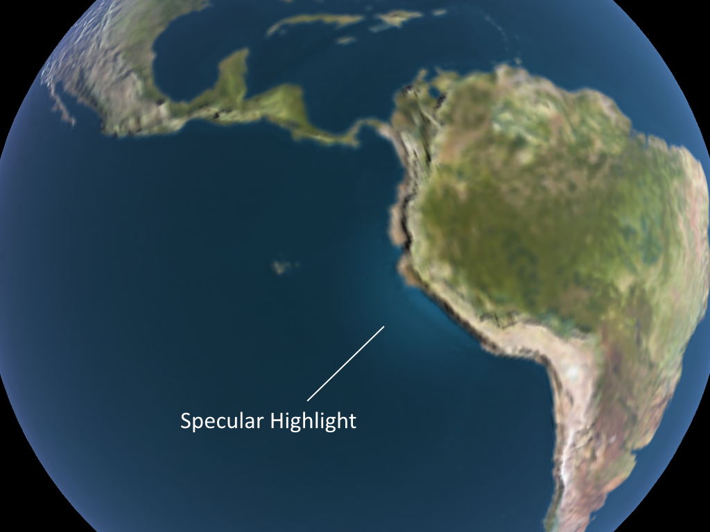 The sphere originally had specular lighting on all areas. I changed that so that only the water has specular highlights by reading from the specular map.