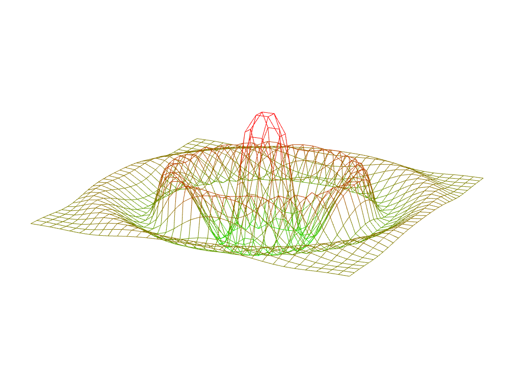 This wave spreads out from the center and has an exponential falloff in height as it moves away from the center.
