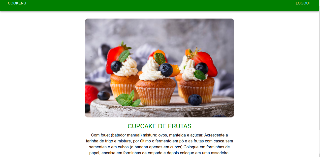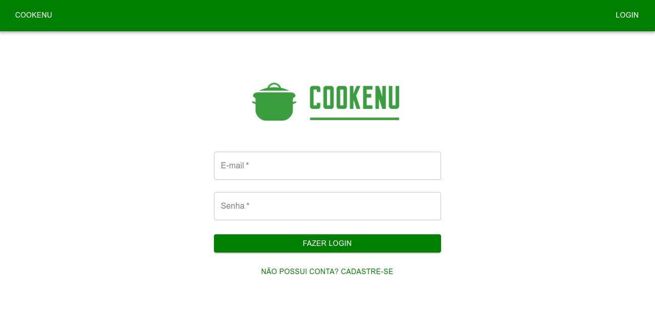 Site de receitas com uma tela inicial de login com botão de cadastro, lista com receitas e possibilidade de adicionar quantas desejar