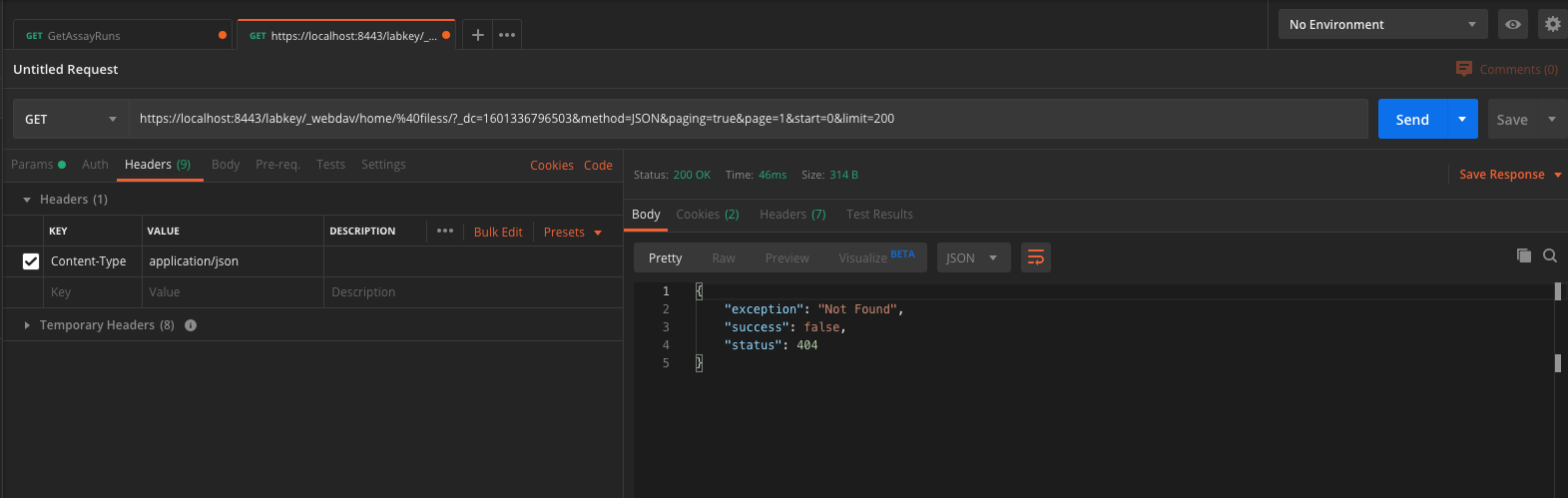 @labkey-nicka Let me know if this looks right. I tried to test through the URL link that you showed yesterday and it renders the error page in browser since the content type is text/html but returns json when apt content type is passed in the request.