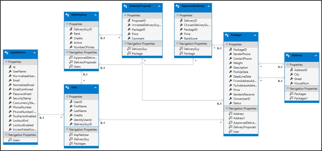 Full-Stack Web Application- built a project with 4 other members that is named "EzDelivery". We communicated and worked together through Azure. The project is a web app which provides a simple solution for sending and delivering items. Users can upload items they would like to send to delivery and other users that are set as delivery members can deliver those items. The front-end was developed with HTML, Javascript, JQuery, AJAX. The back-end was designed with the 3-tier architecture model and developed with C# using Entity Framework Core as the data the model. Prior to the project, we designed a use case diagram, sequence diagram and class diagram to make the coding part simpler.